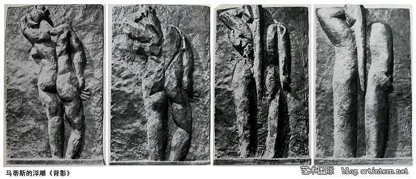 去文学性,注重雕塑语言和形态本身的价值,使之独立于所表达的社会性意义的努力从罗丹自己就开始了!晚年创作的《巴尔扎克》雕像罗丹认为他的最大成功是“向露天雕塑迈出了决定性的一步”!他认为这是对哥特大师和希腊大师的继承,他对这件作品中反复实验所取得的成功相当自信,以至于他面对文学委员会的质疑时,果断地退了该项目已支付的款项,收回了《巴尔扎克》。笔者仔细研究过这件作品,并在中国美术馆罗丹作品的展览上临摹过这件《巴尔扎克》的头像。他的所谓雕塑的露天性其实就是罗丹一贯主张的大面组合与安排更为主动的发挥。经过大面的组合、围合和概括后的雕塑,外形单纯,就像法国的大教堂,室外环境的阳光之下形态光影明确而有力,整体中又不失细节的闪烁。这样目标的实现使罗丹欣喜若狂,其成就已经独立于塑造对巴尔扎克的刻画和描写。大面归纳成几何形态,将雕塑的外形几何化,实际上罗丹在这时一脚跨进了现代主义门槛。罗丹的学生布德尔,因为后来清楚地意识到罗丹雕塑里过重的文学性描写而显得形态琐碎啰嗦,才开始了他雕塑的建筑性与结构性的探索。他继承了罗丹关于面的组织,以及运用了埃及以及东方民族的雕塑手法,高度概括成几何化的形态,人物的刻画虽少了个性,但增添了永恒性。所以当我们去巴黎的布德尔博物馆时,所给予我们的雕塑形式的宏伟、力度、建筑感、永恒感的享受是主要的。罗丹的另一位学生马约尔更是彻底放弃了以往雕塑表现的经典事件和文学题材的模式,一直就做他的胖女人体,始终不渝。看惯了罗丹的浪漫主义躁动之后,马约尔更加追求古典主义的单纯与宁静。马约尔的型与布德尔的相比进一步简化,更加讲究型的单纯与膨胀,在雕塑语言的彰显中,马约尔所塑对象完全是一般性的,或者说是共性的。其实马蒂斯与马约尔有很好的私交,但从不就雕塑的问题展开交流,马蒂斯认为马约尔的东西还是不够纯粹,还没有完全抛弃人的自然结构,他自有与马约尔不同的雕塑的理念。画完画之余经常玩玩雕塑,他玩玩不要紧,可对现代主义雕塑生长与发展的影响很大。马蒂斯的雕塑完全放弃了对人体解剖的“刻画”,放弃了“描写”,他的雕塑就是形态的空间处理和摆布,人体也就是他实验雕塑理想的途径或媒介而已。他的雕塑就像书法,像写出来的一样。他说他的艺术有阿拉伯风,阿拉伯的文字很飘逸,有一气哈成之感。有一年马蒂斯做了三块人体背影的浮雕,一个题材,三个进程,一个从具体到简化抽象的过程。在毕加索的绘画中也有类似的实验:将一头牛经三、四个步骤简化为几根线。